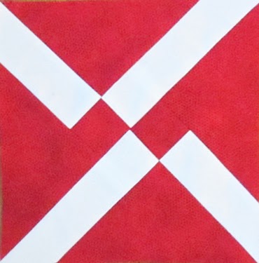 She used the same speckled red print in every block contrasted with a plain white cotton.