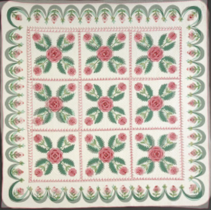 So my guess is the auction quilt at top is a copy of Rose Kretsinger's quilt, made from one of her hand-drawn patterns or from the Farm Journal pattern---although Rose could have made the same quilt twice.