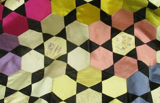 The pattern of two pieces, a triangle and a hexagon, is one of the few hexagon blocks you see in the 19th century.