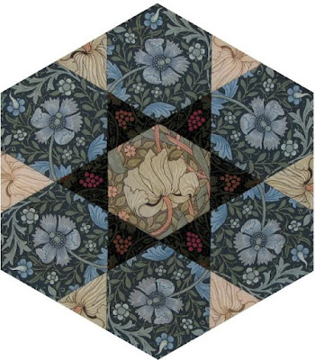 I named this week's hexie Hammersmith Terrace for the Georgian row house neighborhood which was the Morris family's London home after 1878.