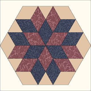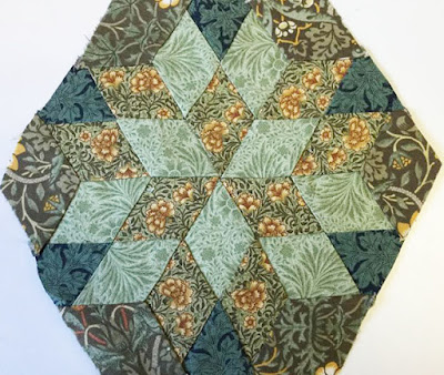 I named this week's hexie Queen Square for a Morris home in London's Bloomsbury neighborhood. In 1865 the young Morris family moved their residence and workshop here, combining the two in a building at 26 Queen Square.
