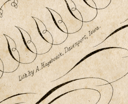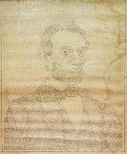 There are two sources for these published calligraphic Lincoln portraits. The most common were drawn by William H. Pratt and lithographed by A. Hageboeck in Iowa. Others are attributed to E. C. Smith. Some say the Pratt portraits are from 1865; others say 1867.