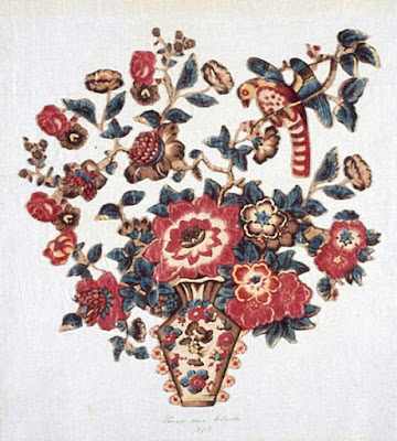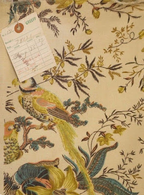 Life pictured her with one of her "rags" a cut-out chintz bedcover. At the time she was a source for fabric designers looking for what we might call document prints. According to Life they called them rags. (I've never heard anyone call these rags.)