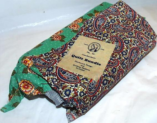 These remnant bundles and boxes of "old-fashioned" quilt patches sold