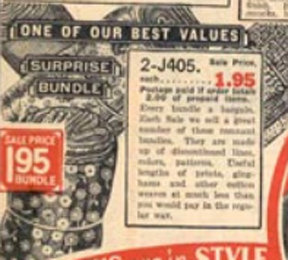 The Royal Alberta Museum has posted this vintage ad for a Surprise Bundle of fabric.