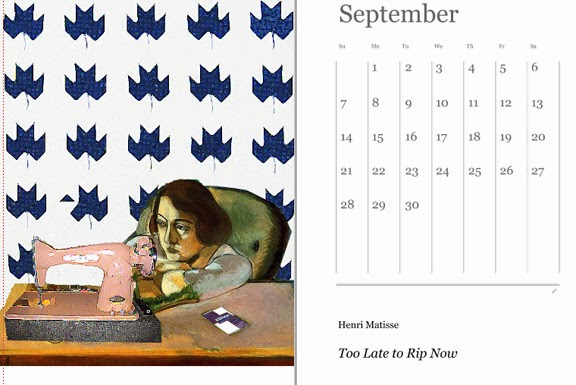 I needed a 2014 desk calendar with quilts in it. So I made one. Several years ago I did a wall calendar with altered paintings, which kept me entertained all year. I whipped up a few more collaborations between the Great Masters and me and used Blurb.com to design and publish a calendar.